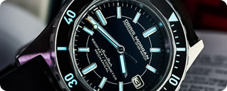 THE DIAL The dial is appealing, Obris morgan has made different dial variation to choose from, for this review we chose the blue dial. Within the variation of dial to choose from is the blue/black dial, for me personally is the main feature of the Seastar, the dial is divided by a circle. You can enjoy the dial colours when placed against a light source at certain angle. It works effectively at drawing the eye to the centre of the dial. At the 12 o’ clock marker, you’ll find the Obris morgan name imprinted and at 6 o’ clock is the name of the model – Seastar, the water-resistant metering (200 meters) and the type of movement written, also at at 3 o’ clock is the date function. Personally, l would have preferred less writing so as to appreciate the beauty of this dial, but this does not take away from the overall beauty of the Seastar. The hands and markers of the Seastar are filled with Super-LumiNova BGW9. The lume on the Seastar is quite impressive but gets weaker after few minutes of exposure, although l would have loved to see the lume applied at its brightest, probably with the Super-LumiNova C3 X1.